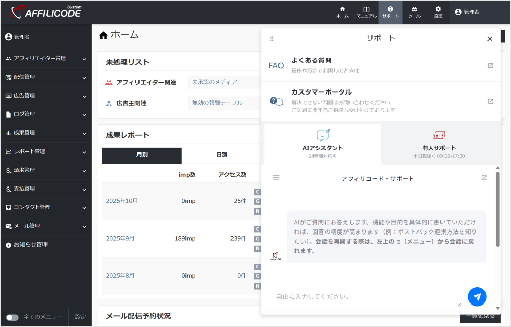 アフィリコード・システムを活用するためのサポート体制は万全。