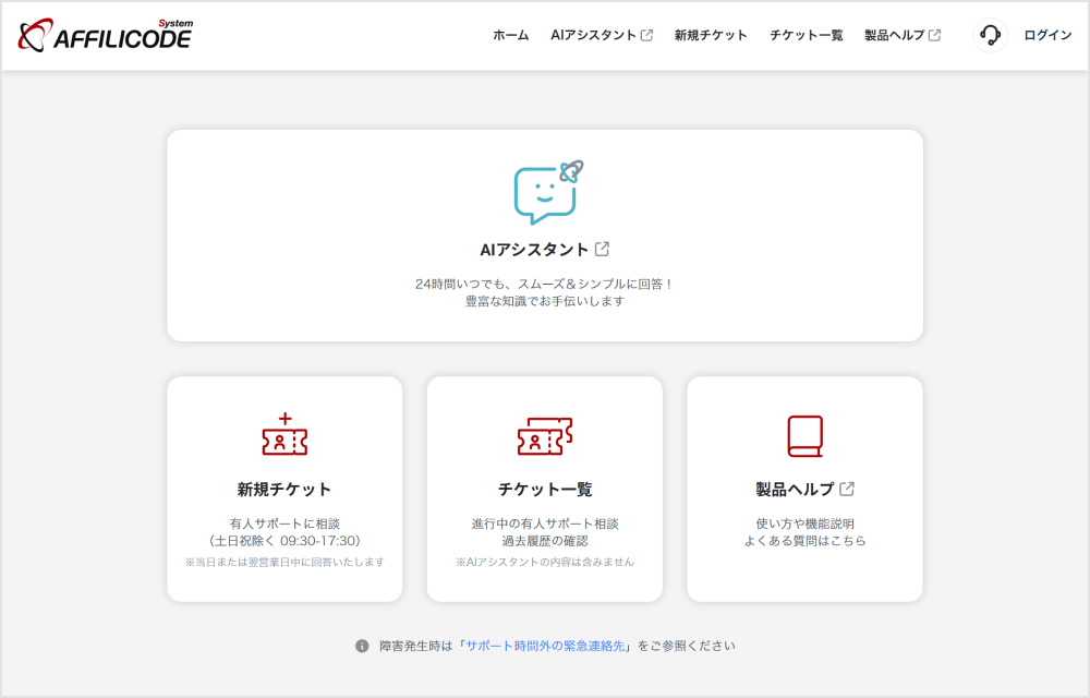 アフィリコード・リンクについて詳しくみる製品の使い方・疑問はいつでも問い合わせ